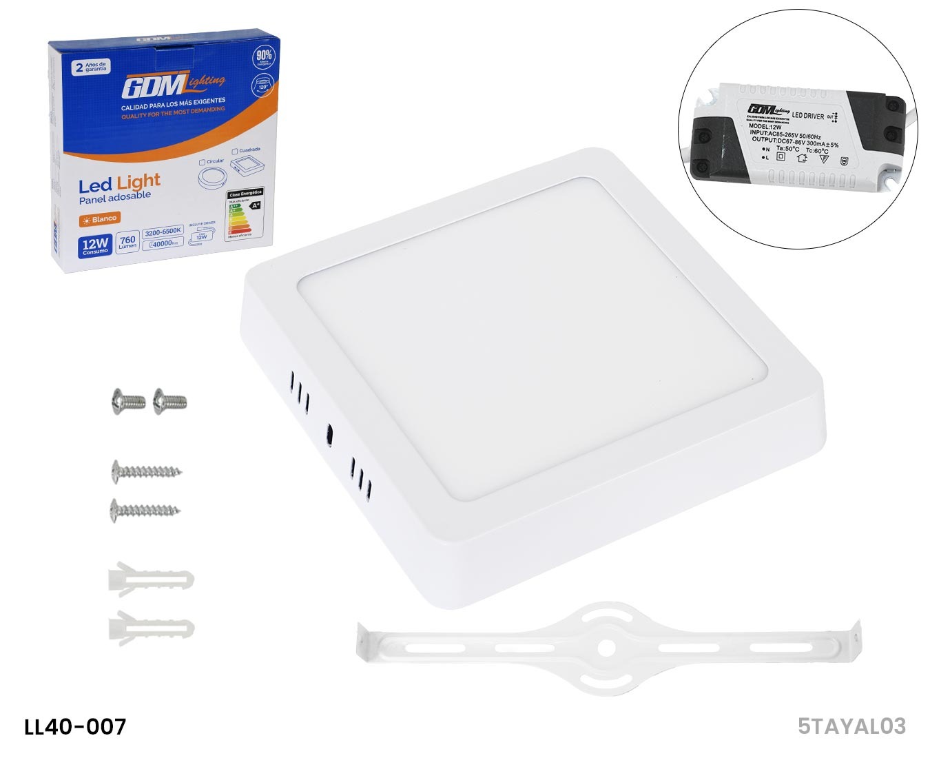 PANEL LED LIGHT 12 WATTS, 1980 LM, 6500 K, 40000 HRS MARCA GDM